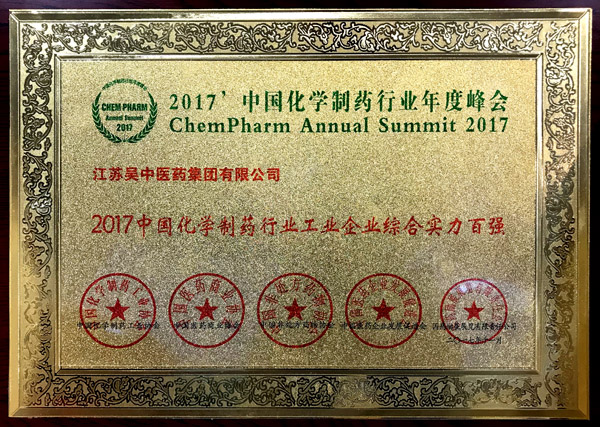 江蘇吳中醫藥集團榮獲“2017中國化學制藥行業工業企業綜合實力百強”