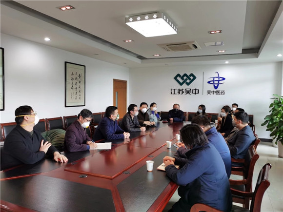 2月3日上午,吳中區委副書記、區長陳嶸帶領吳中經濟開發區黨工委副書記、管委會副主任顧玉琪,吳中經濟開發區黨工委委員、管委會副主任郁克銘,吳中經濟開發區招商局局長姚靜等領導到吳中醫藥進行走訪調研,了解公司在抗擊新型肺炎疫情特殊時期各項生產經營運行情況以及存在的困難和問題。