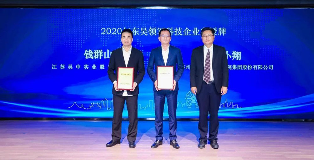 10月18日,在“智匯吳中、造優未來”——2020蘇州吳中太湖經貿合作洽談會科技局分活動暨東吳創新中心推介會上,股份公司董事長、首席執行官錢群山獲評東吳領軍科技企業家,股份公司副總裁、江蘇吳中醫藥集團有限公司總經理孫田江獲評東吳重點科技企業家,吳中區政府副區長姚東等領導分別為東吳科技企業家授牌。
