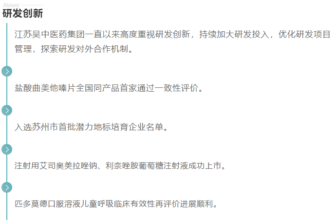 根據(jù)蘇州市《市政府關(guān)于公布第三批蘇州市自主品牌大企業(yè)和領(lǐng)軍企業(yè)先進(jìn)技術(shù)研究院建設(shè)企業(yè)名單的通知》,江蘇吳中醫(yī)藥集團(tuán)有限公司入選蘇州市第三批自主品牌大企業(yè)和領(lǐng)軍企業(yè)先進(jìn)技術(shù)研究院建設(shè)企業(yè)名單。