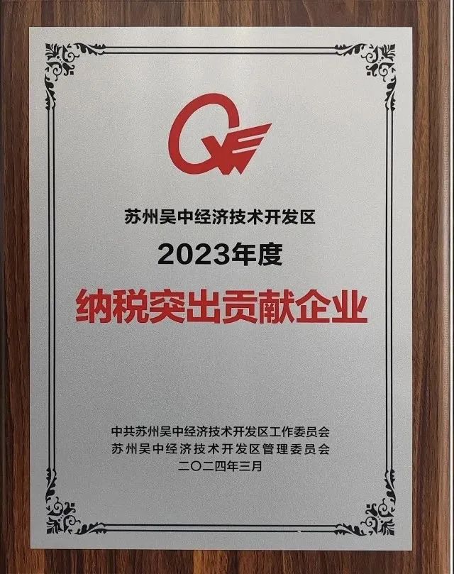 榮譽:公司獲評吳中經開區2023年度經濟貢獻突出企業