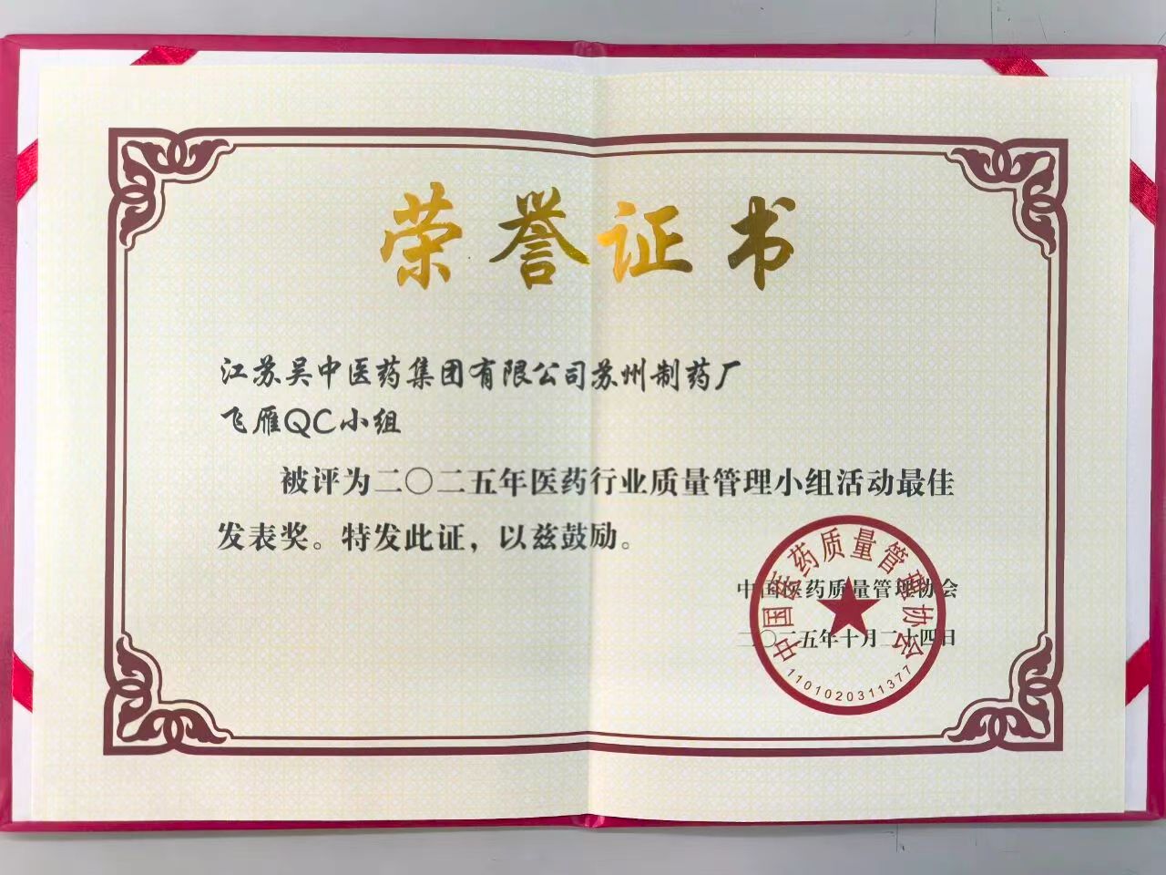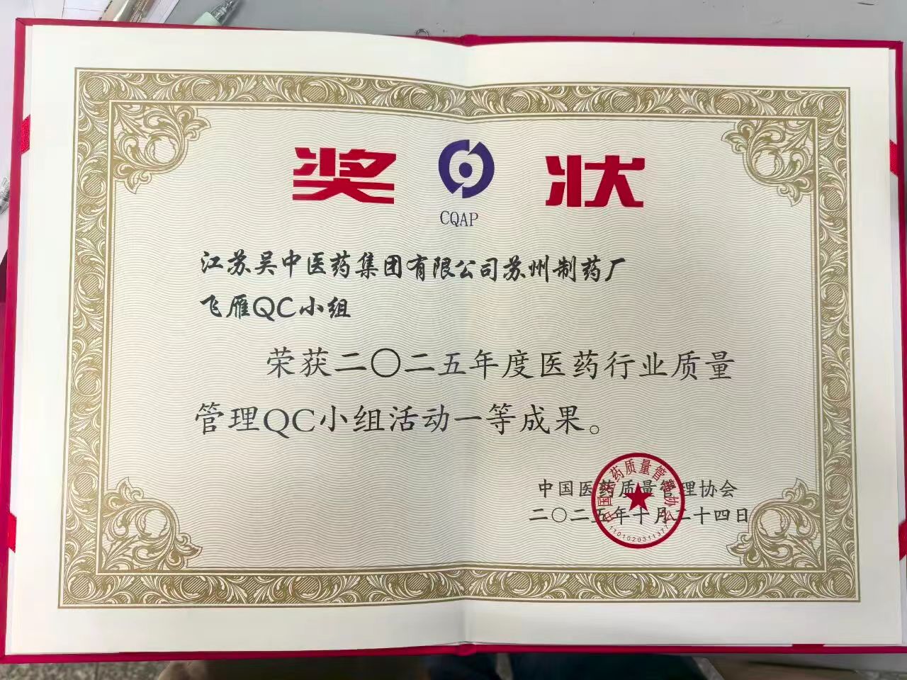 喜報丨吳中醫(yī)藥蘇州制藥廠榮獲全國醫(yī)藥行業(yè)QC小組成果評比雙獎
