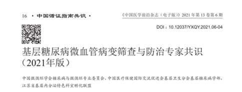 2021年6月,中國微循環(huán)學(xué)會糖尿病與微循環(huán)專業(yè)委員會等發(fā)起、東南大學(xué)附屬中大醫(yī)院孫子林教授牽頭,《基層糖尿病微血管病變篩查與防治專家共識(2021年版)》正式發(fā)布,旨在進行早期干預(yù)防治糖尿病及其微血管并發(fā)癥,規(guī)范臨床醫(yī)師糖尿病微循環(huán)障礙診療,造福更多的糖尿病患者。