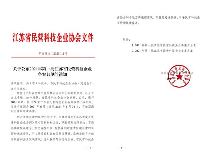 根據(jù)《關(guān)于公布2021年第一批江蘇省民營科技企業(yè)備案名單的通知》(蘇民科協(xié)〔2021〕2號),江蘇吳中醫(yī)藥集團有限公司入選2021年第一批江蘇省民營科技企業(yè)備案名單,吳中醫(yī)藥自2016年起連續(xù)入選江蘇省民營科技企業(yè)。